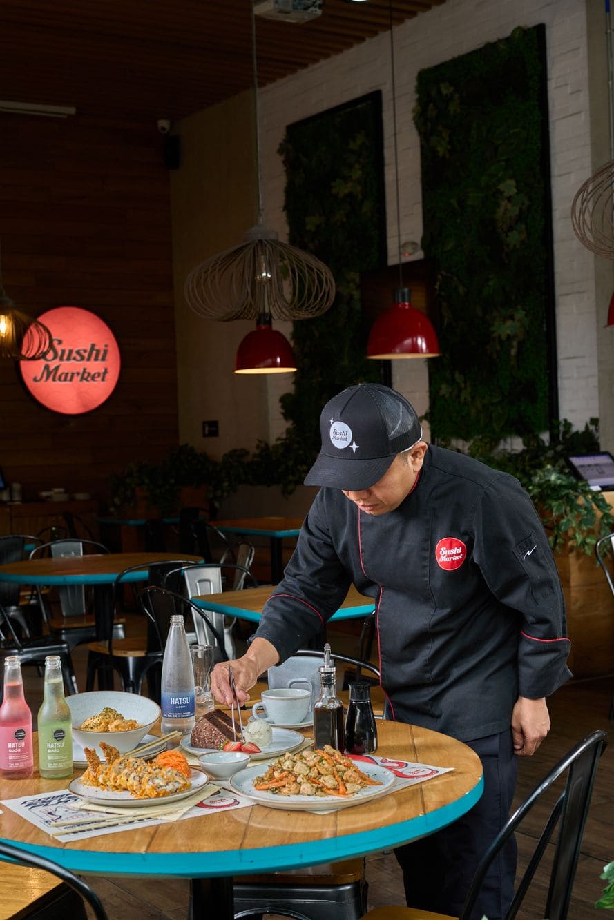 - Roll del chef: Roll de salmón fresco, langostino apanado y queso crema; con tope de aguacate, cebollín y la famosa salsa del chef a base de crema de trufas y mayonesa japonesa.