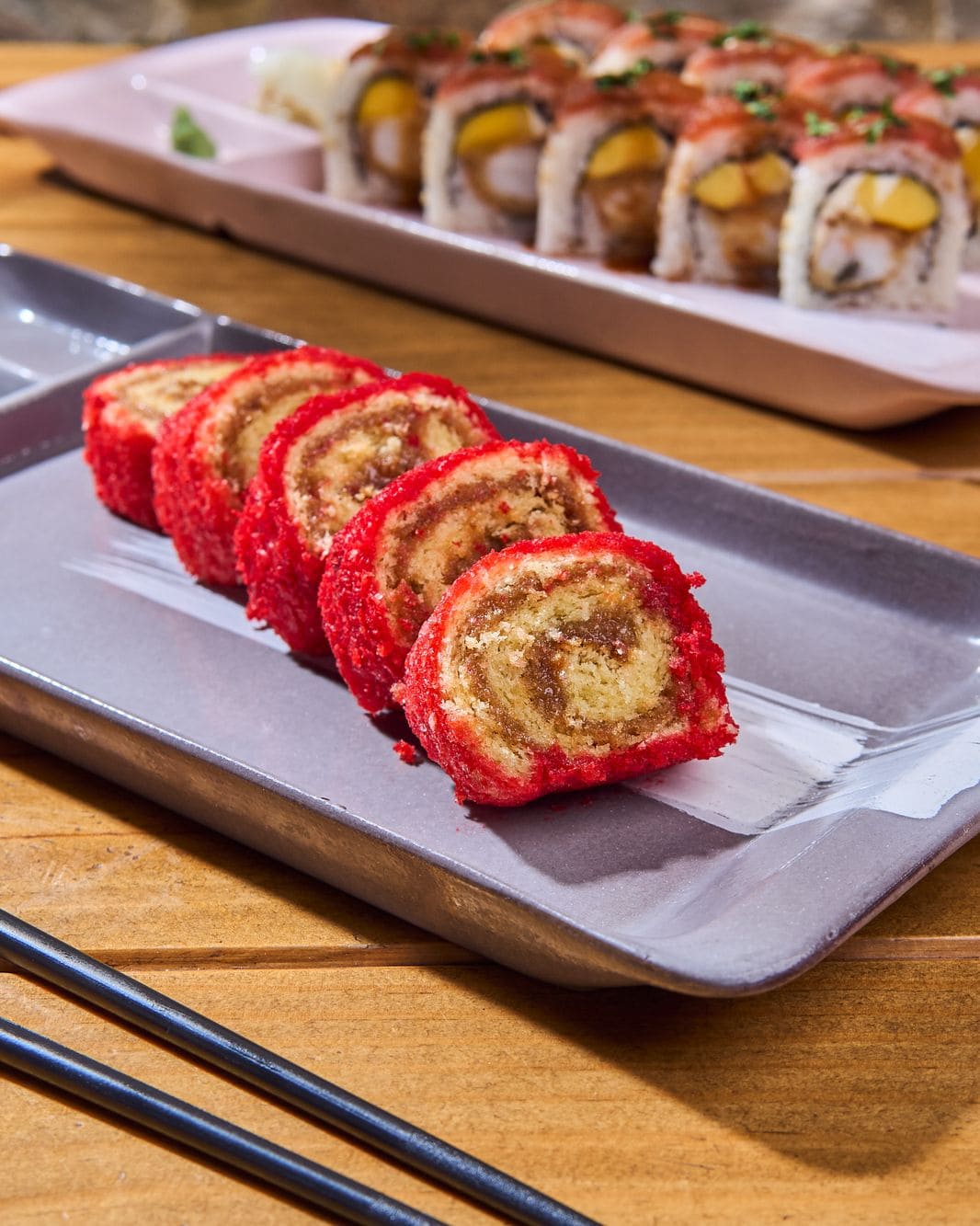 - Sushi cake : Bocados de tradicional rollo de torta colombiana.