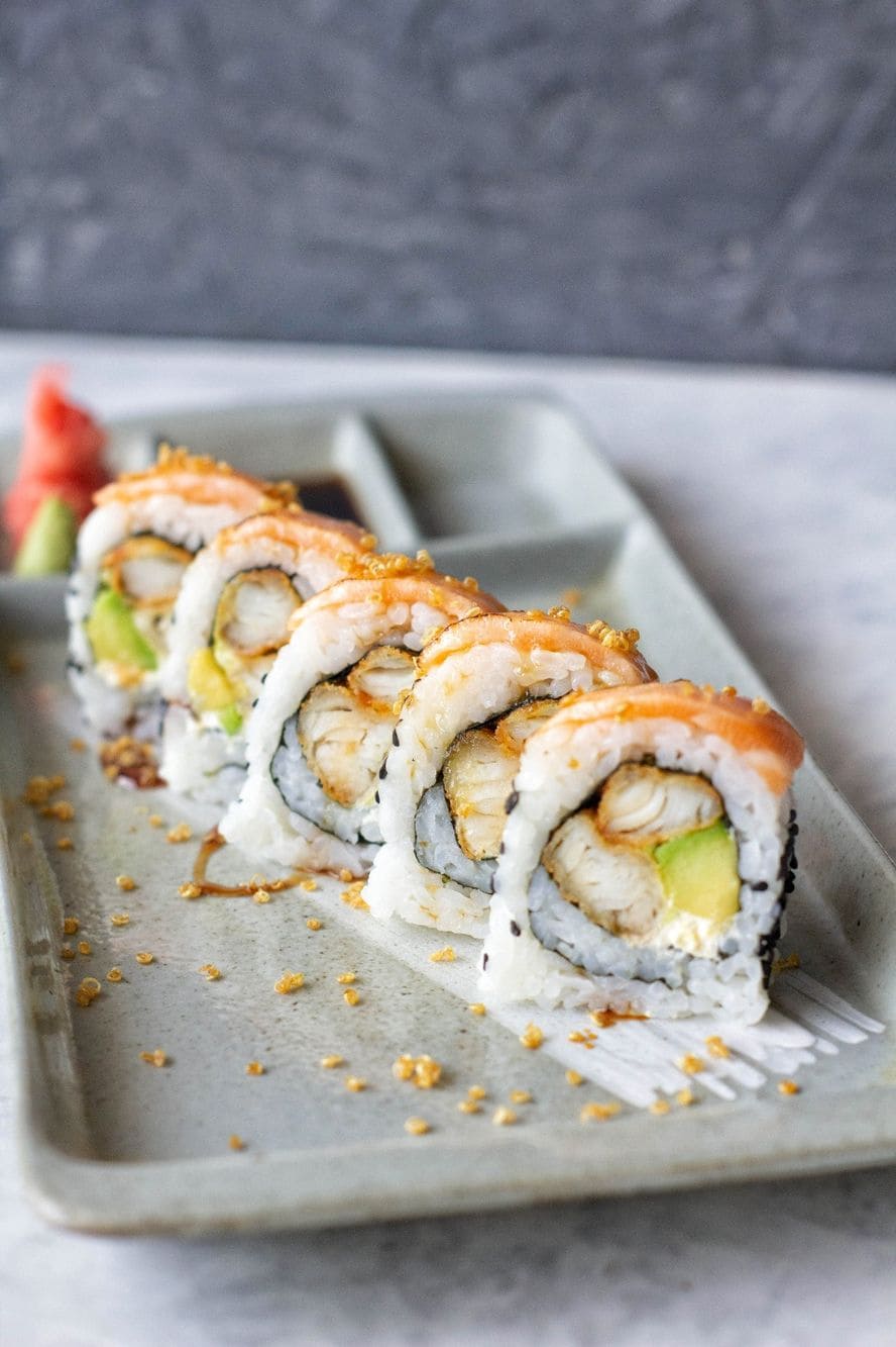 - Rollo tribuga : Rollo tempura de queso tofu, albahaca, champiñones, puerro caramelizado y bañado con exótica reducción de gulupa y teriyaki. (vegetariano)