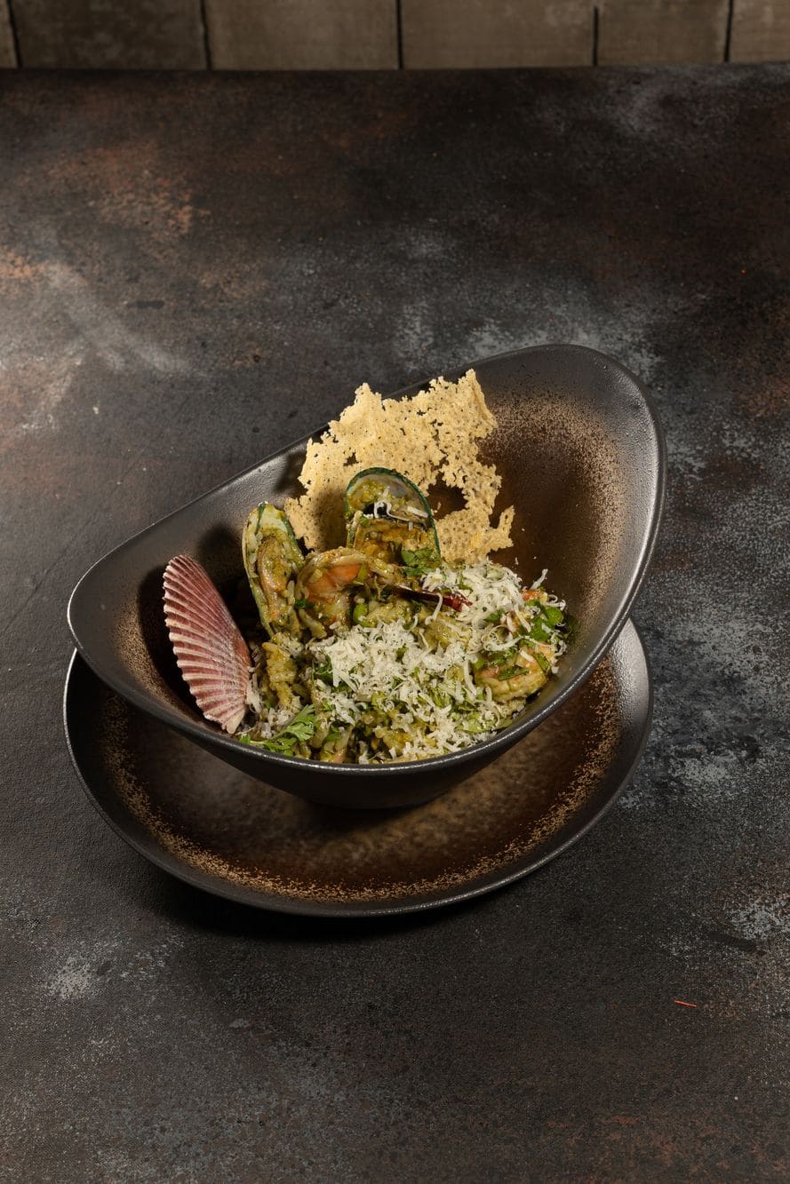 - Arroz cremoso de mariscos: Interpretación de autor donde la cremosidad del arroz se funde con mariscos seleccionados, una sutil mezcla de quesos y vino, logrando un sabor envolvente y memorable.