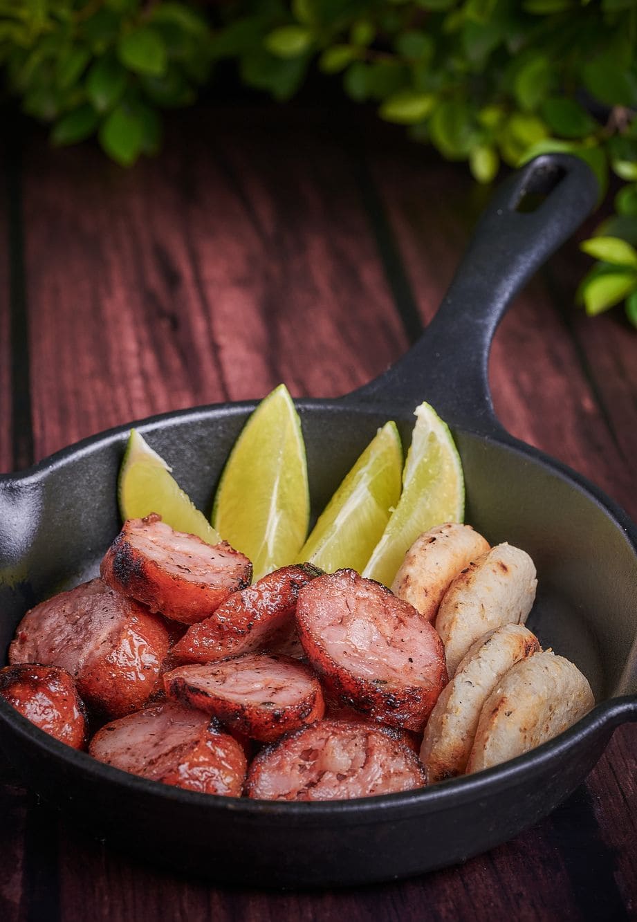 - Chorizo argentino: Embutido artesanal de finas carnes condimentadas, acompañado de limón y arepas.
