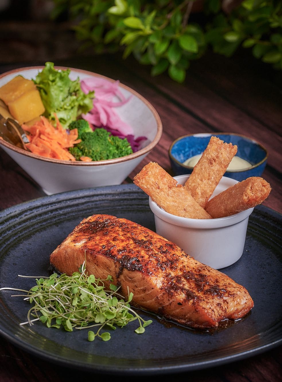 - Salmón: Filete grueso de intenso sabor perfectamente sellado