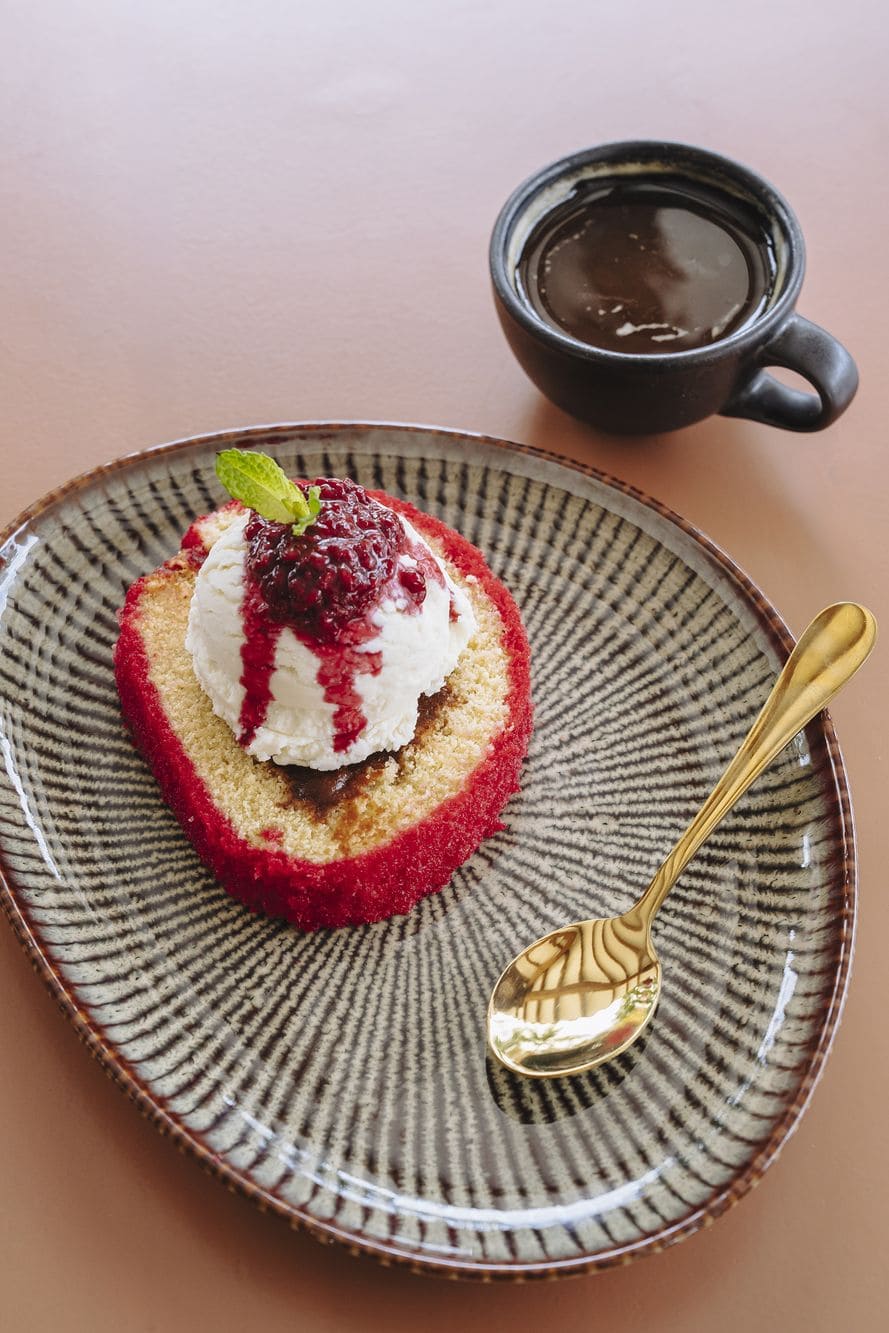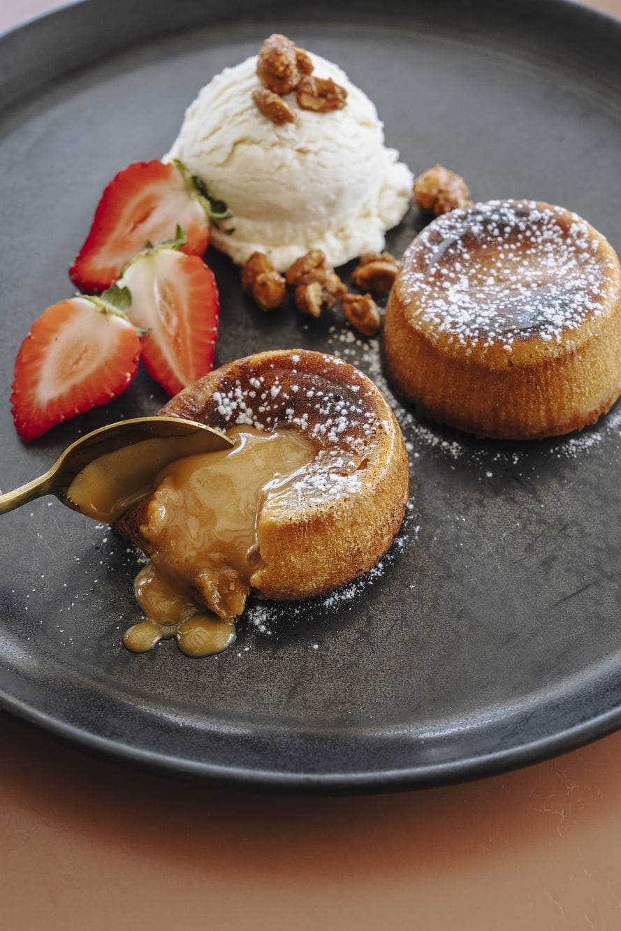 - Fuego de la montaña: Volcán tibio con centro fundente de arequipe, acompañado de helado de vainilla y maní caramelizado.