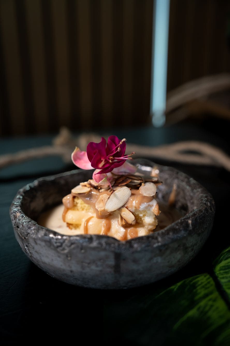 - Bizcochuelo esponjoso bañado en salsa tres leches, acompañado de crema pastelera de coco, arequipe de lulo y un toque crujiente de almendras tostadas.